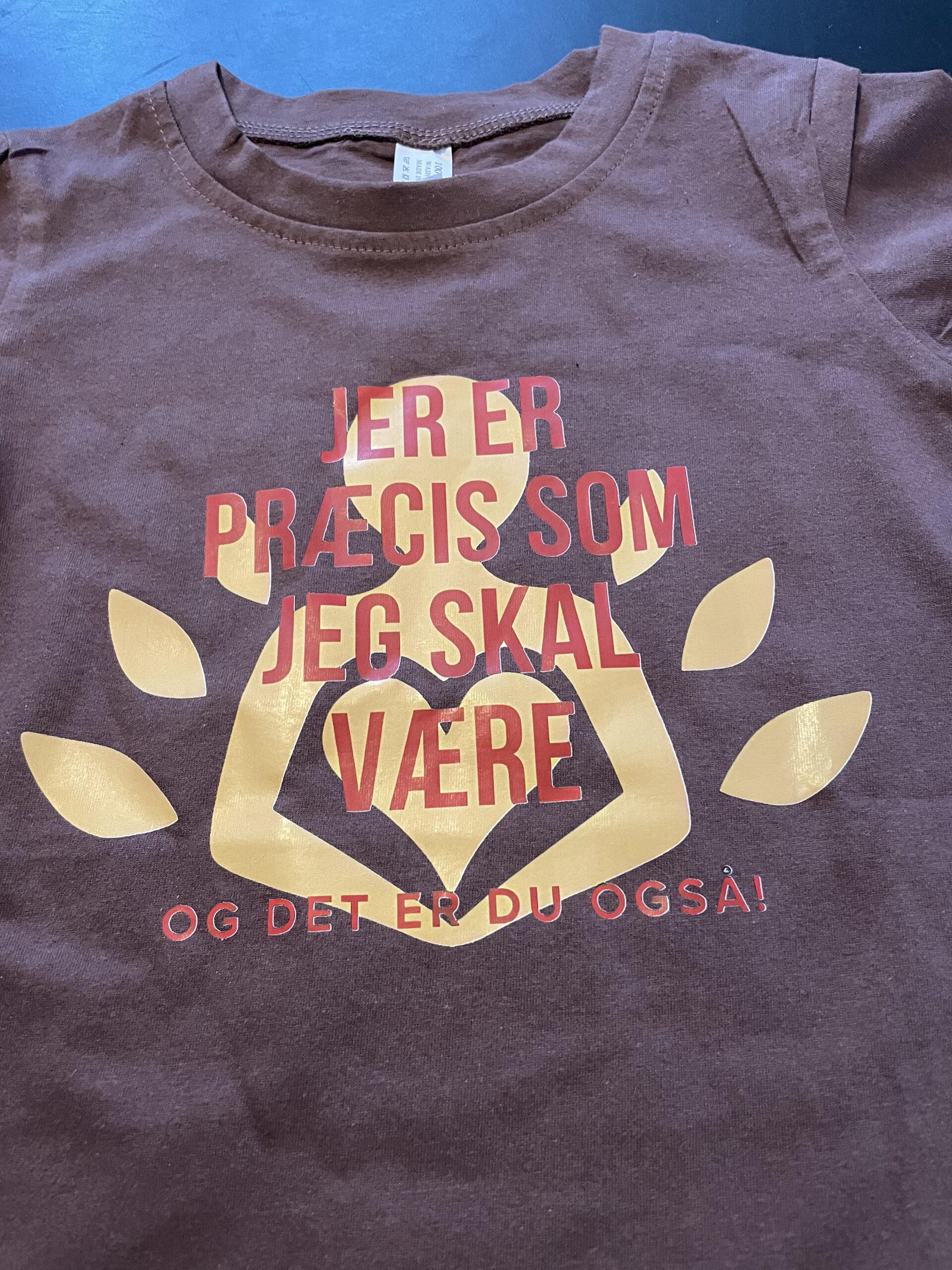 T-shirt “Jeg er præcis som jeg skal være”, brun